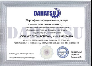 3 года гарантия от производителя DAHATSU. 3 года сервисная гарантия от климатической компании Сплит-Настрой.