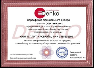 3 года гарантия от производителя DENKO. 3 года сервисная гарантия от климатической компании Сплит-Настрой.
